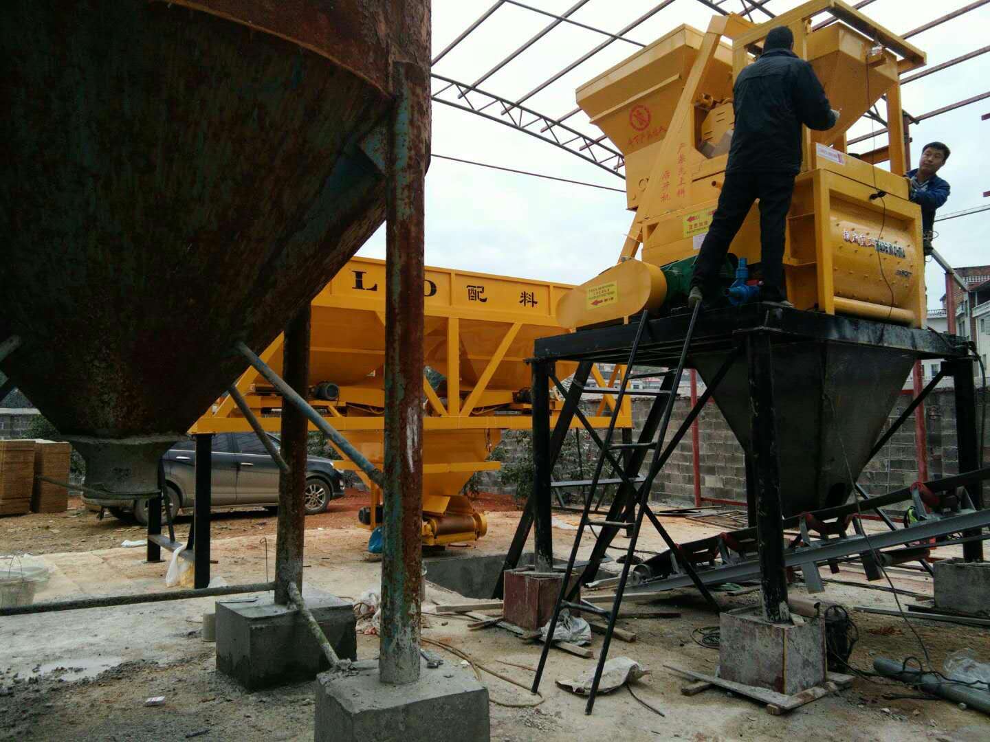 工作人員正在安裝配料倉