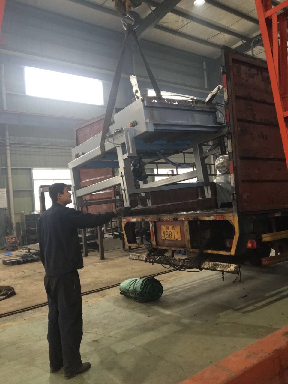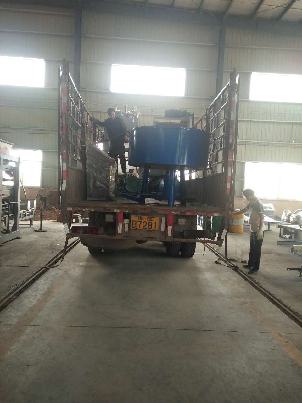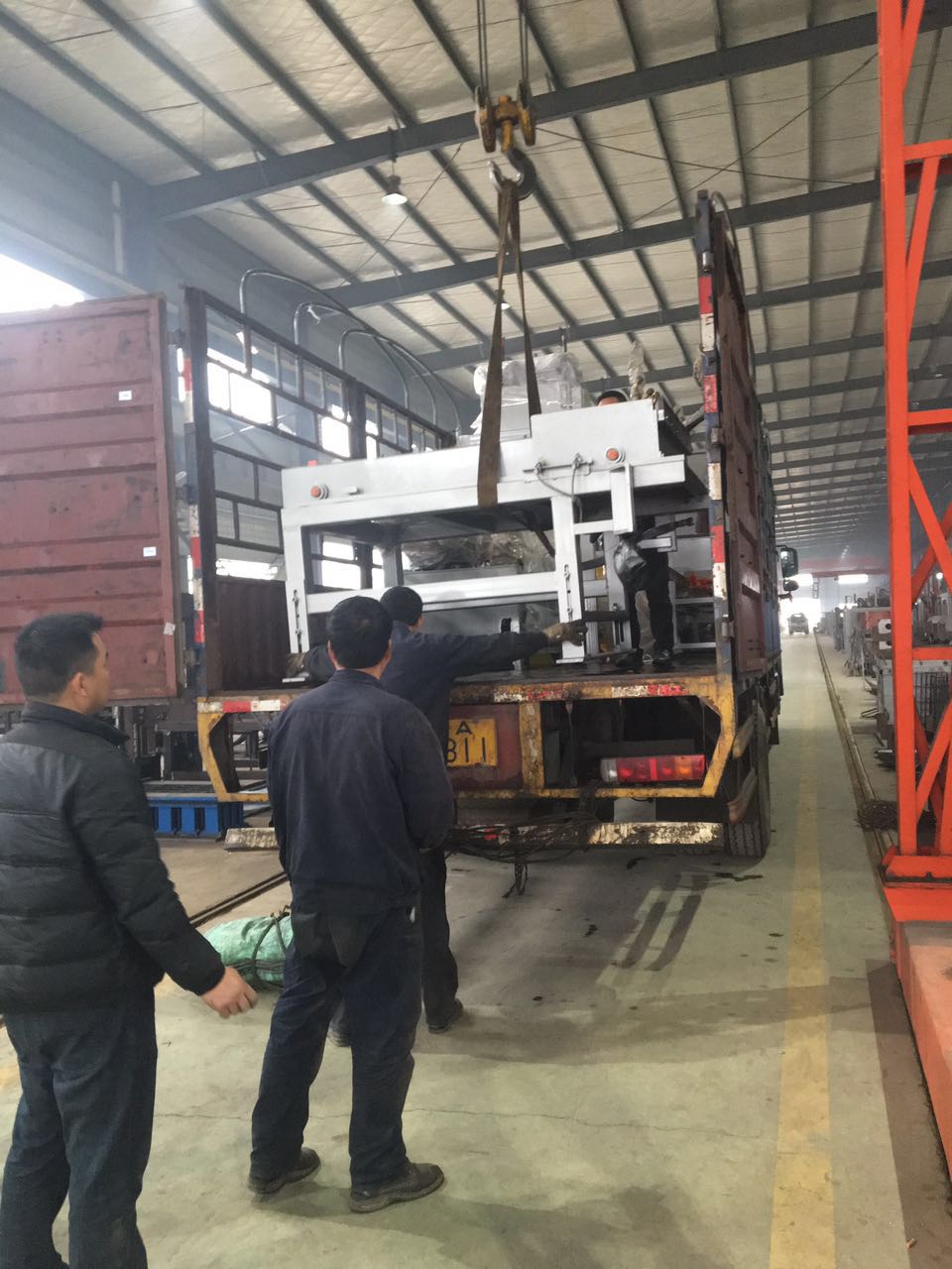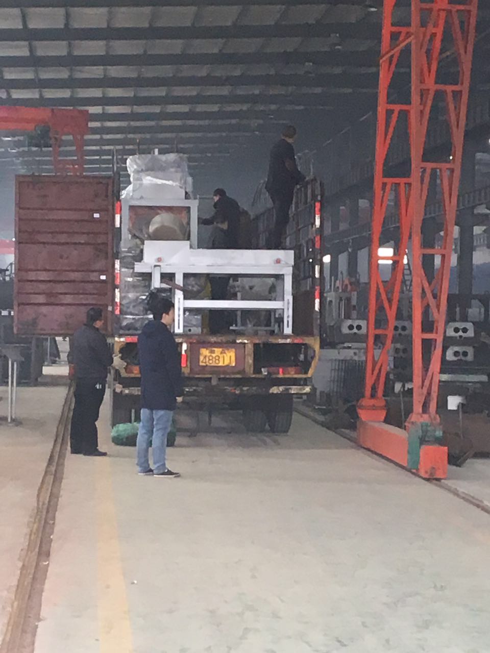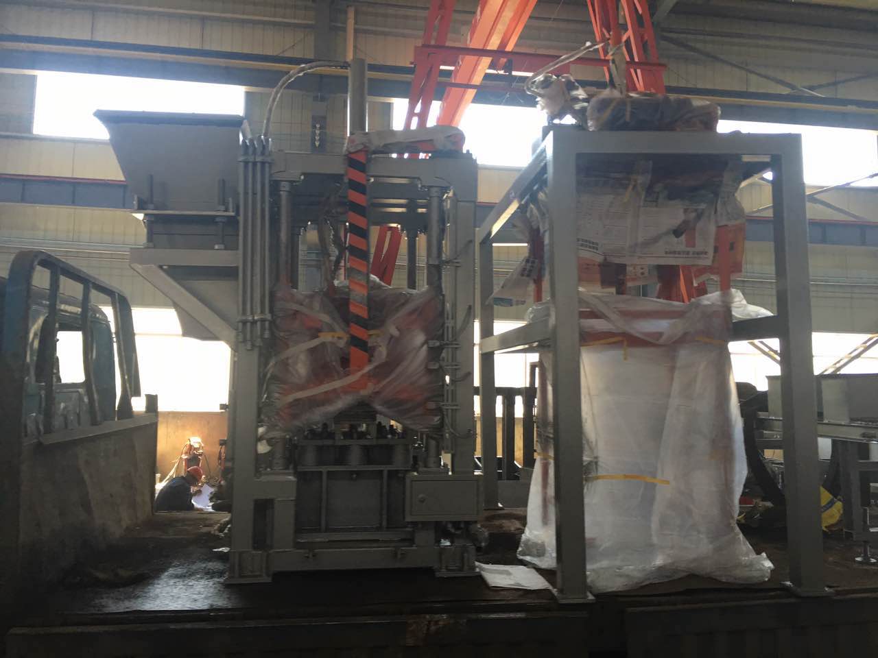 工作人員正在安裝配料倉